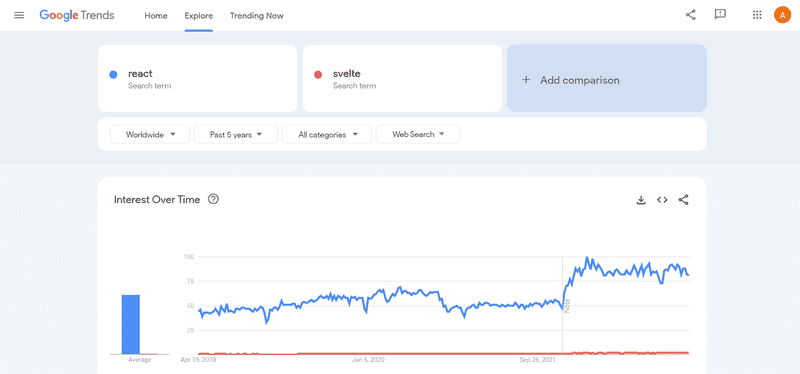 Graph showing Google Trends data of Svelte from the last 5 years